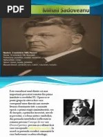 Opera literara, literatura proletcultista si monografiile critice scrise de mihail sadoveanu. Este considerat cel mai mare prozator roman din toate timpurile, fiind numit de geo bogza stefan cel mare al literaturii romanesti. 1891 copilul mihai capt numele sadoveanu; Începe s citeasc unele cri din biblioteca tatlui su, fiind atras în mod deosebit de povestirile cu haiduci, extrem de rspândite în epoc, dar i de istorie. A fost un scriitor, povestitor, nuvelist, romancier, academician si om politic roman. Nascut la 5 noiembrie 1880 la pascani ; Opera literara, literatura proletcultista si monografiile critice scrise de mihail sadoveanu.